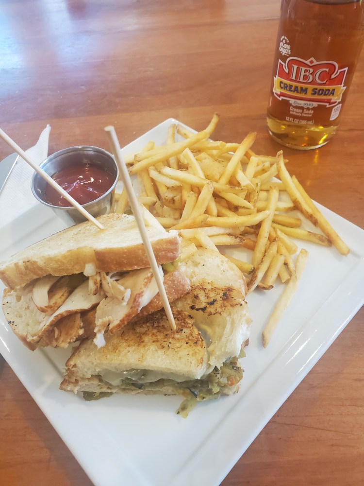 I arrived at Albuquerque Museum at 11:30 and had a small lunch at Slate at the Museum, a small cafe inside the museum. I ordered an Albuquerque Turkey sandwich and an IBC Cream Soda. The sandwich was delicious but they served it with those skinny shoestring french fries I hate so much.