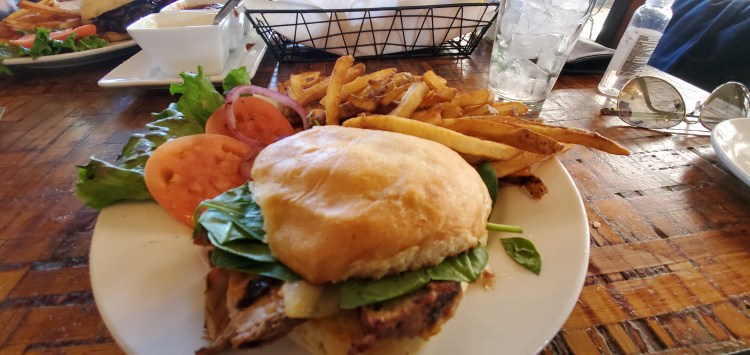 We stopped at Grill Caliente on Sudderth where we had chips with a queso/salsa/guacamole trio. For my entrée, I had a grilled pork tenderloin sandwich with an amazing pineapple chipotle sauce and avocado on a jalapeno sourdough bread and Brandy had the mushroom swiss burger.