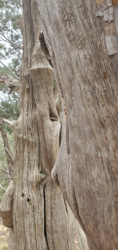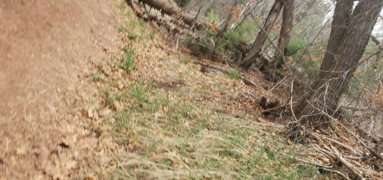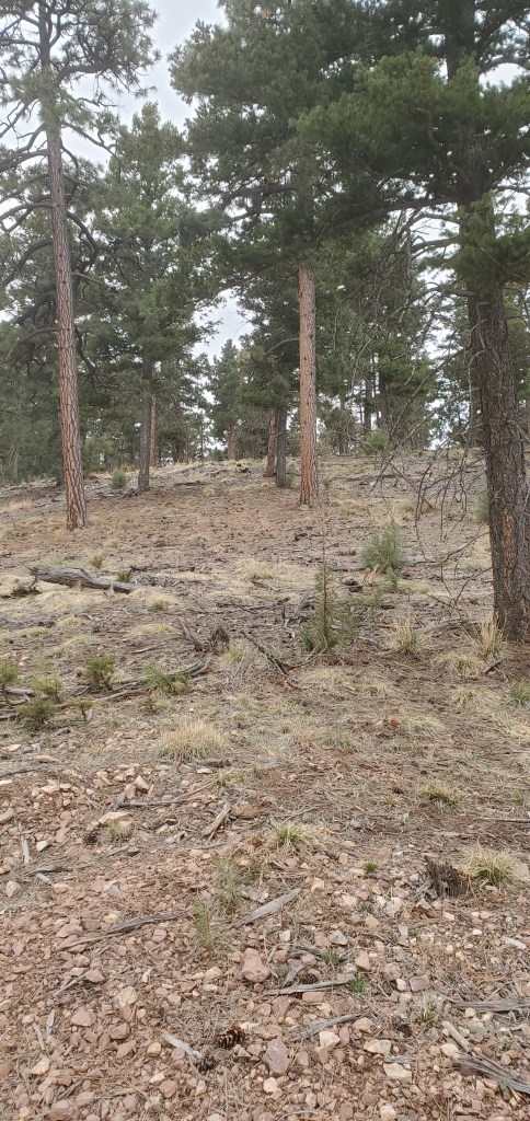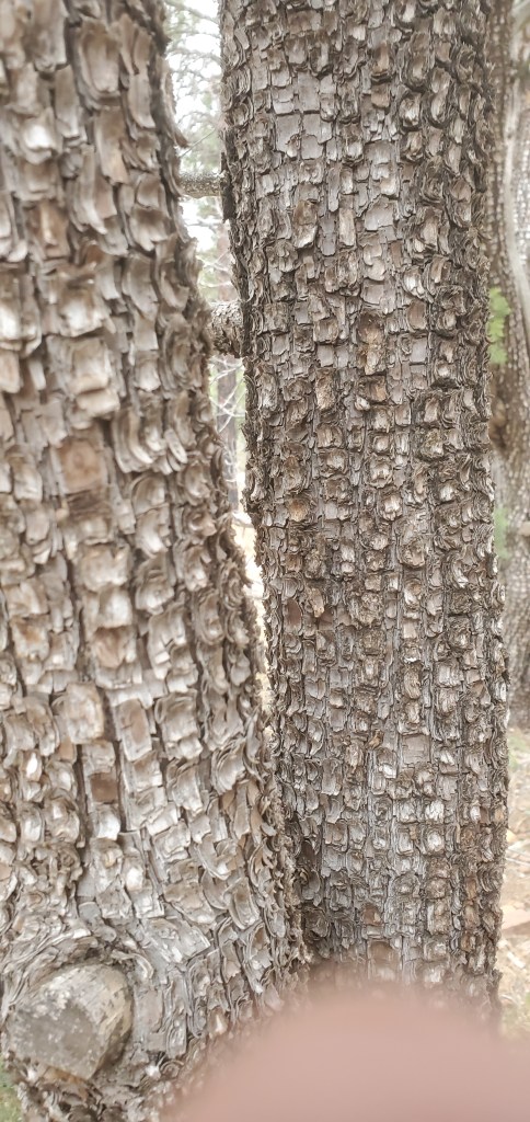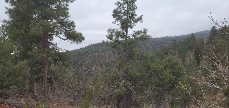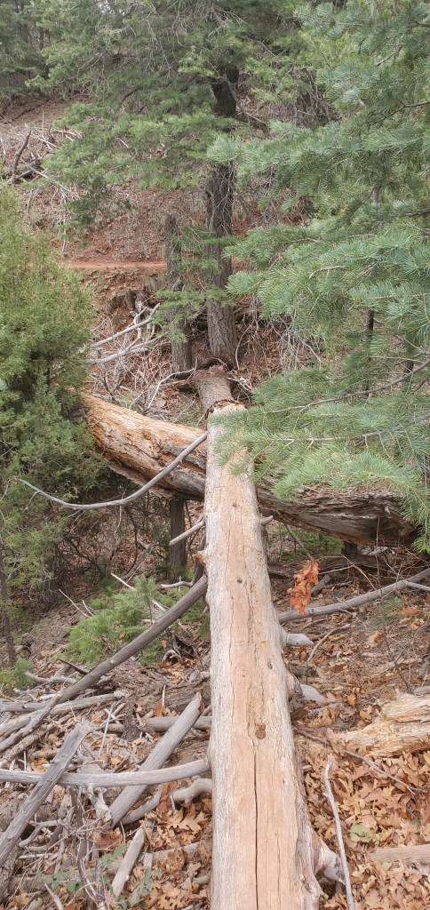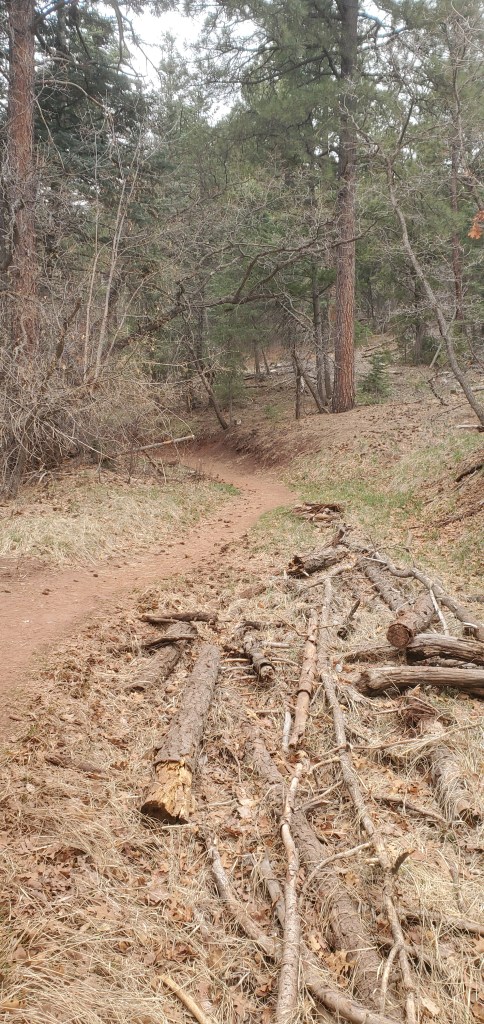 We meandered through Cibola National Forest on the Faulty Trail for a short bit before coming to the intersection with Cienega Horse Bypass Trail. The dirt trail eventually became littered with loose rock which became hazardous when I twisted my right ankle… three separate times. With Ash very full of energy, he was pulling hard on the leash making the hike even more treacherous.