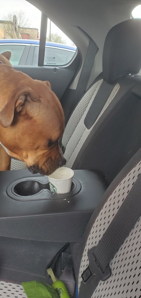 So early this morning, I got dressed in jeans and a t-shirt with my wool socks and hiking boots. I took my sweater because I knew it was supposed to be cold. I filled my backpack with the usual stuff: water for me, a separate bottle for Ash, his bowls and a baggie of food for him. We headed out at about 8:45, stopping at Starbucks on the way for a coffee and a pup cup.