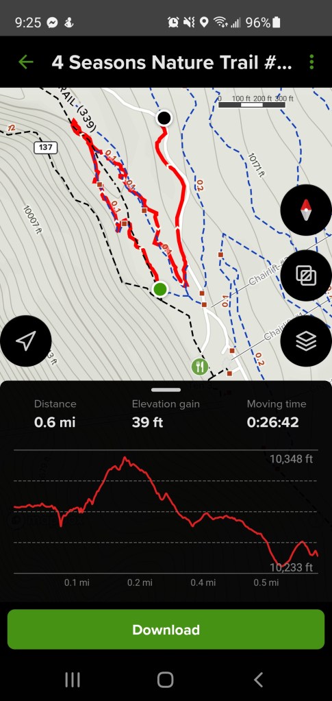 Alltrails has the 4 Seasons Nature Trail listed as an easy half mile trail with a 24 foot elevation gain. I knew it was supposed to be chilly at the top of the mountain, so I wore jeans, a long sleeved Henley, and a flannel.